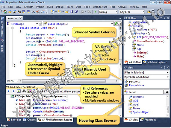 Whole Tomato Visual Assist X 非常好用的 Microsoft Visual Studio 插件,自動識別各種關