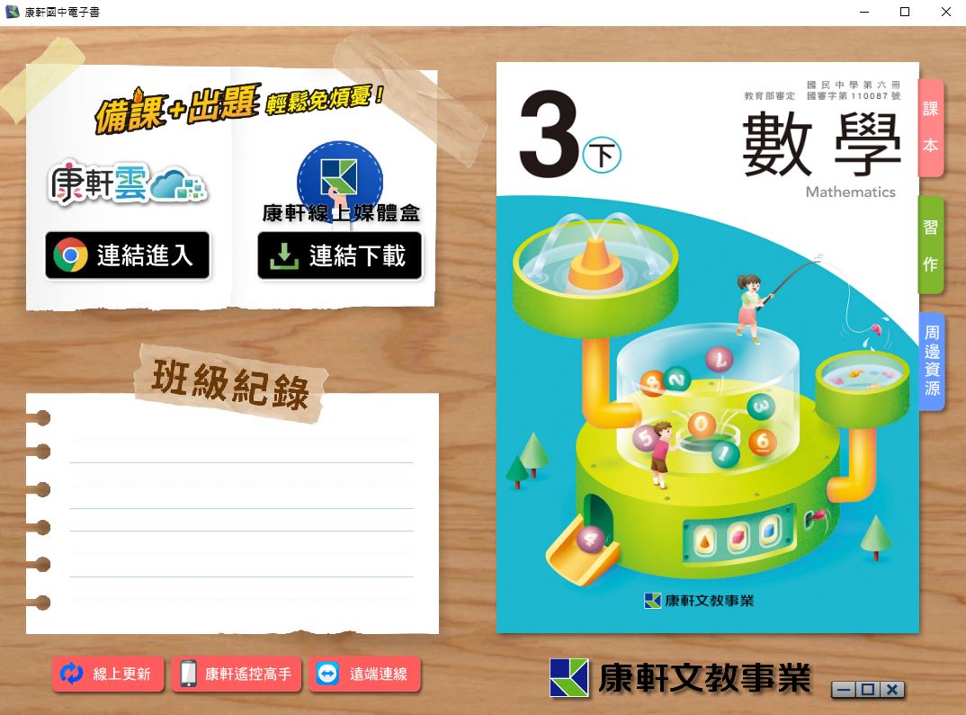 111學年下學期 國中 康軒版 數學電子書 3年級(含課本、習作含解答、教學資源)教學光碟